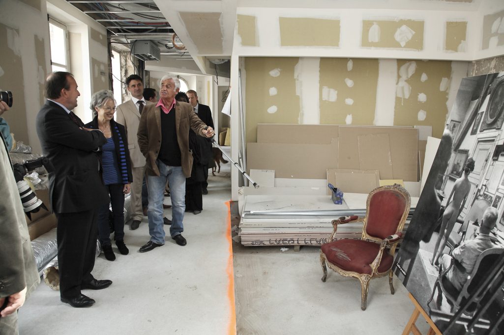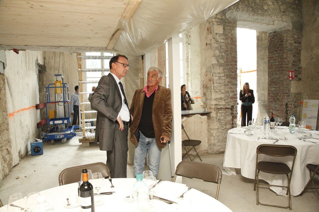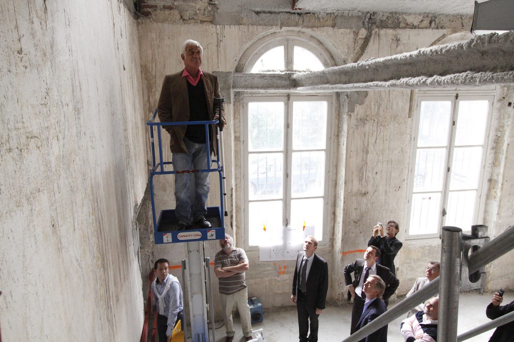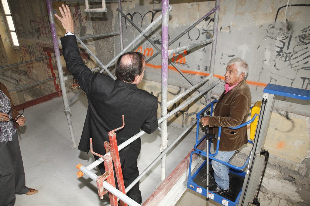 Visite de Jean Paul Belmondo sur le chantier du Musée en hommage à son père Paul Belmondo, sculpteur. Boulognes Billancourt 92100